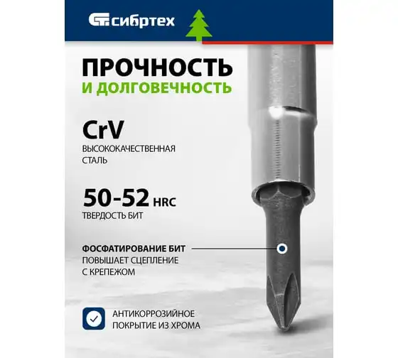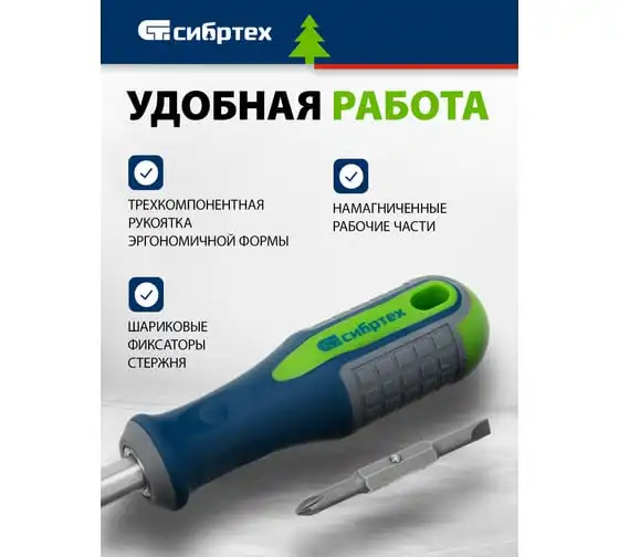 Реверсивная комбинированная отвертка СИБРТЕХ PH2/SL6 CrV// 13368