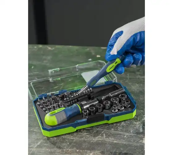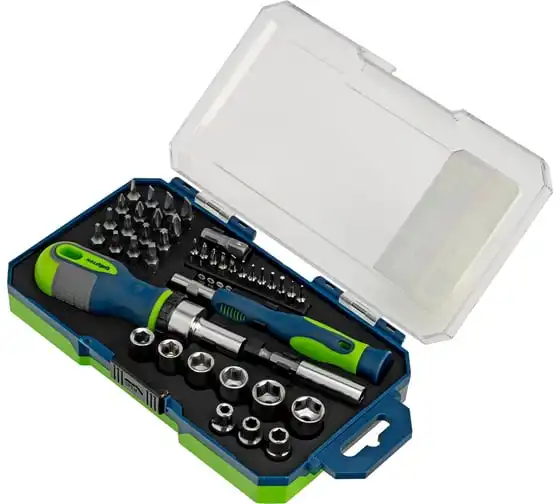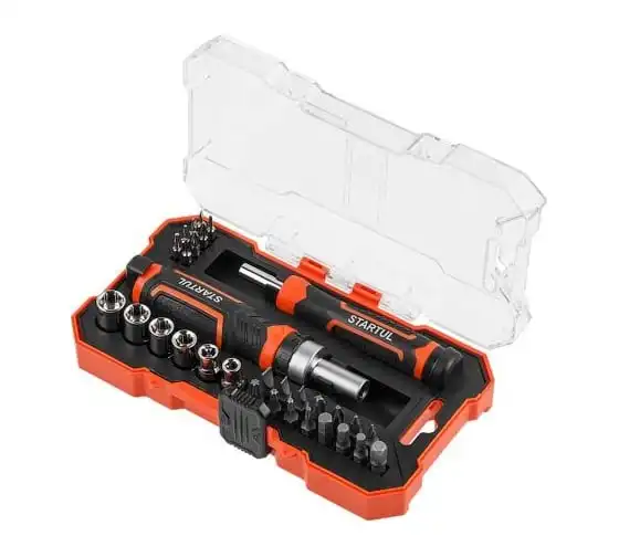 Реверсивная отвертка с набором бит и торцевых головок STARTUL Profi 28 предметов ST3095-28