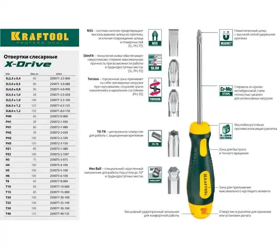 Отвертка KRAFTOOL Х-Drive, Hex3 x 75, 250075-3-075