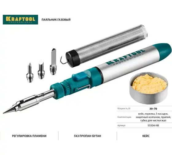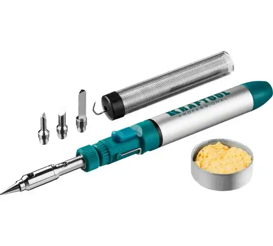 Набор, паяльник газовый, 3в1, 4 насадки, припой, чистка жал, 1300С KRAFTOOL 55504-H8