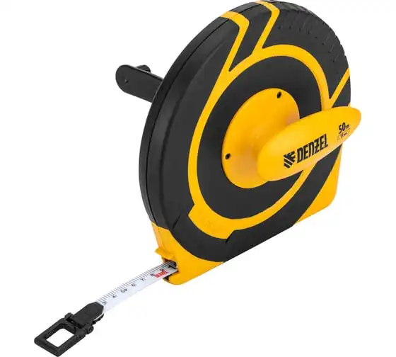 Рулетка Denzel геодезическая 50 м х 15 мм, закрытый корпус, фибергласовая лента 31292