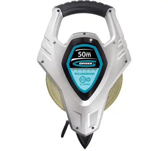 Геодезическая рулетка GROSS 50 м х 13 мм, открытый корпус, металлическая лента, двусторонняя шкала 31480