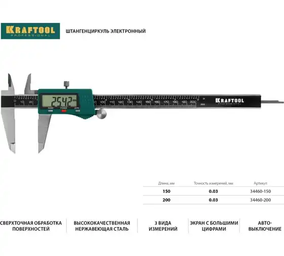 Электронный штангенциркуль, 200мм, 0,01мм KRAFTOOL 34460-200