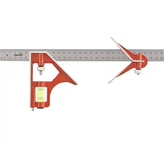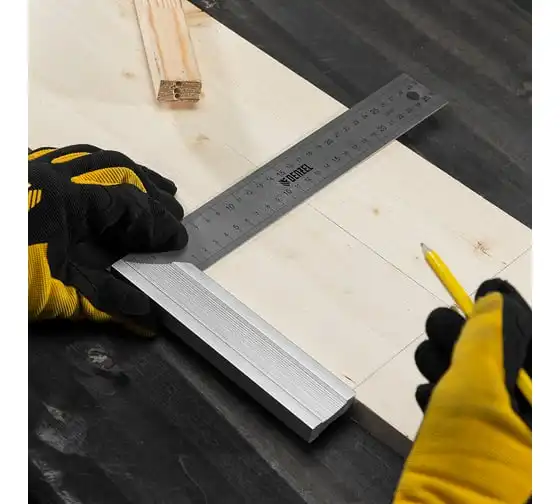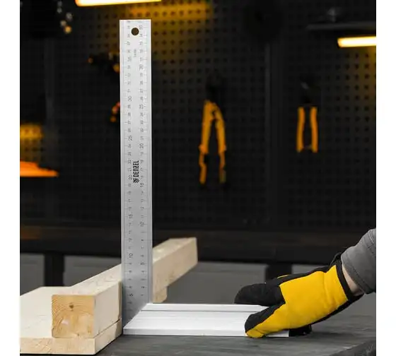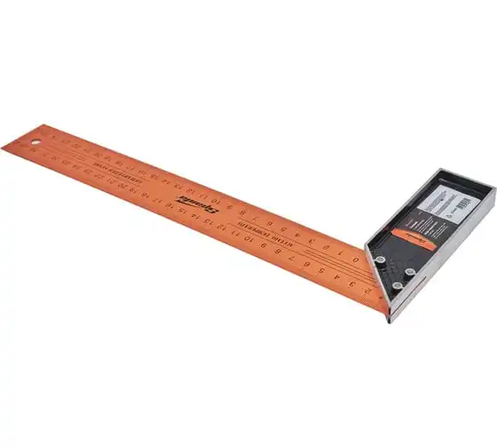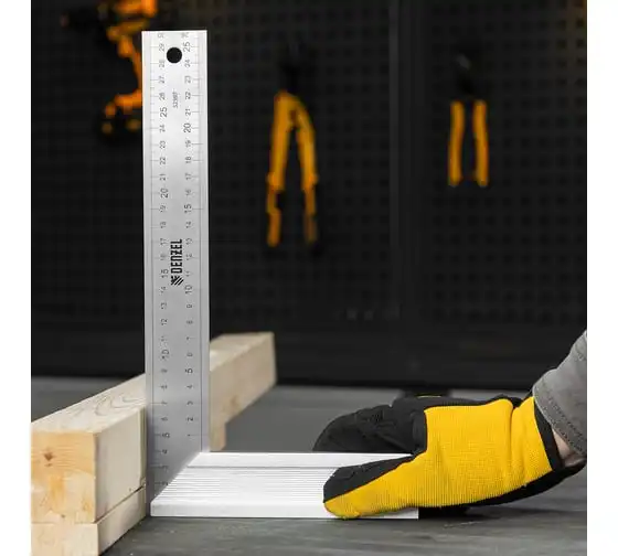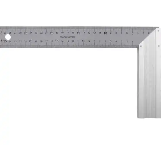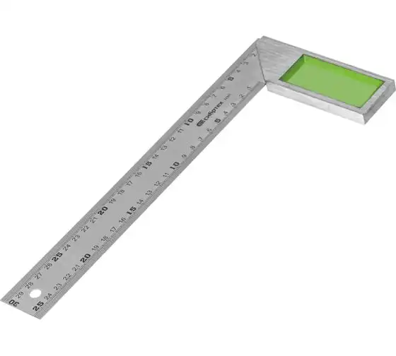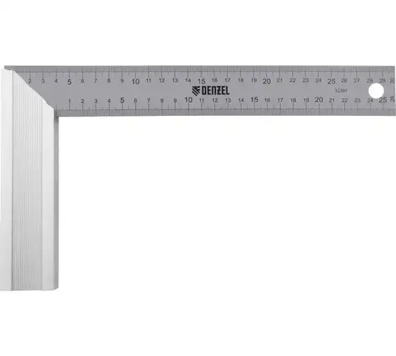 Угольник Denzel нержавеющая сталь, градуировка, алюминиевое основание, 300 мм 32397