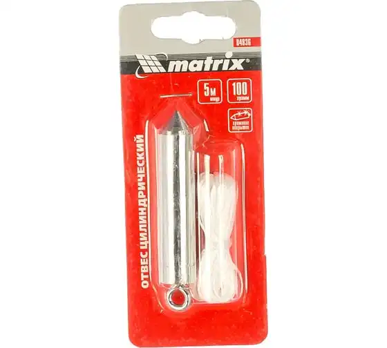 Отвес цилиндрический (100 г; шнур 5 м) MATRIX 84836