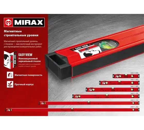 Магнитный строительный уровень MIRAX 1000 мм 34611-100