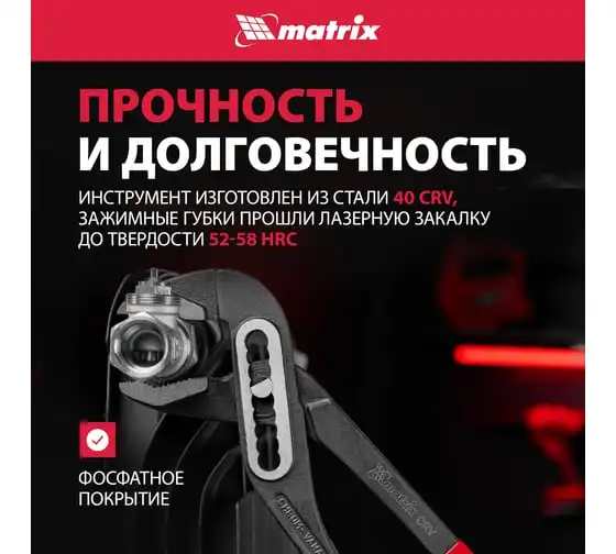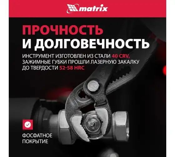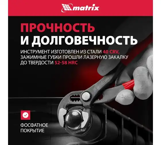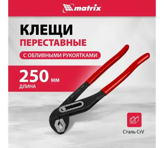 Переставные клещи MATRIX 250 мм, хром-ванадий, обливные рукоятки 17921