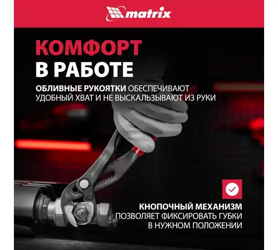 Переставные клещи MATRIX 250 мм, кнопочный механизм, хром-ванадий, обливные рукоятки 17926