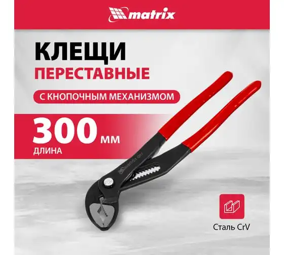 Переставные клещи MATRIX 300 мм, кнопочный механизм, хром-ванадий, обливные рукоятки 17927