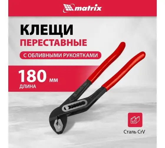 Переставные клещи MATRIX 180 мм, хром-ванадий, обливные рукоятки 17920