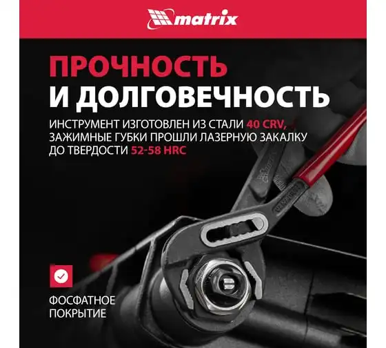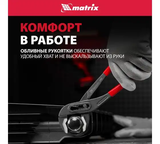 Переставные клещи MATRIX 250 мм, хром-ванадий, обливные рукоятки 17921
