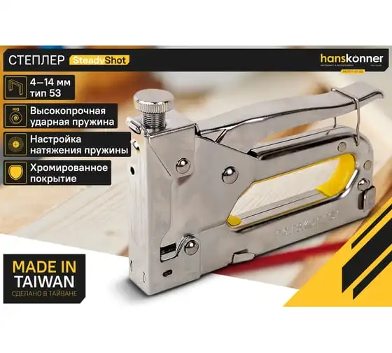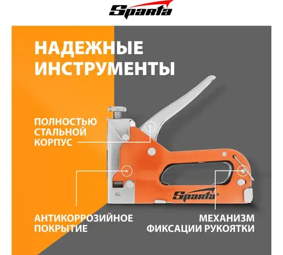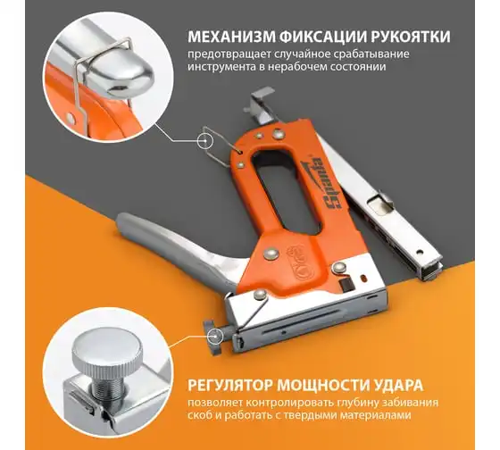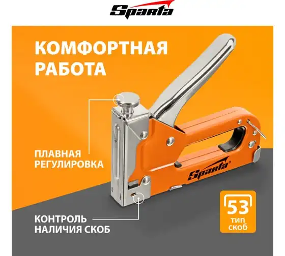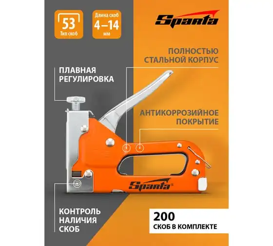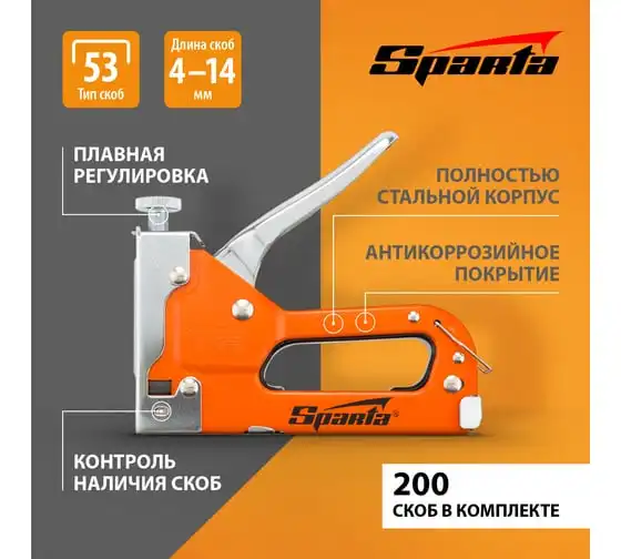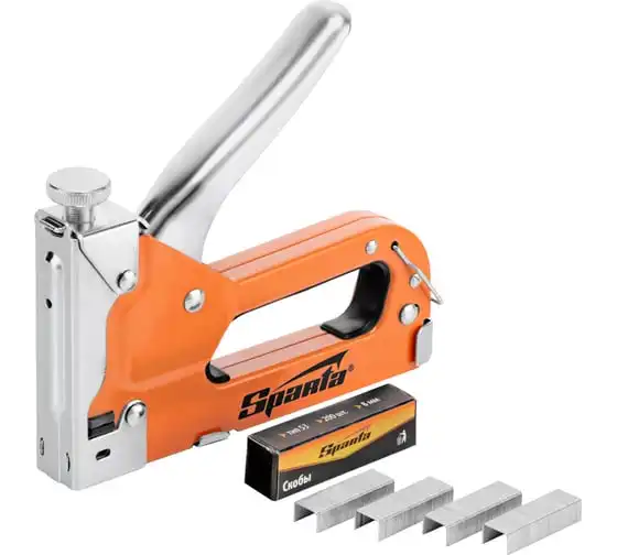 Мебельный регулируемый степлер SPARTA со скобами 200 шт., тип скобы 53, 4-14 мм 42002