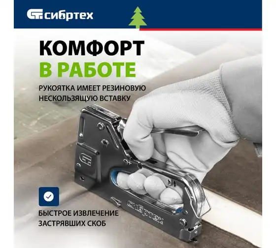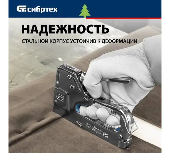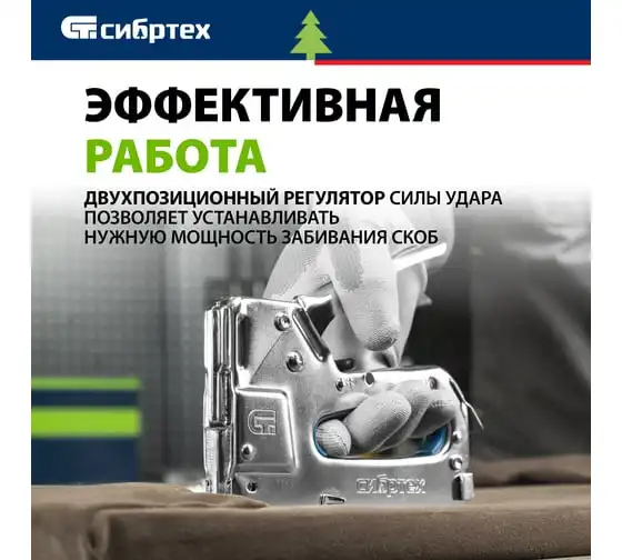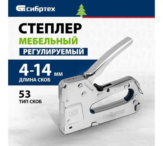 Мебельный степлер СИБРТЕХ металлический, регулируемый, тип скобы 53, 4-14 мм 40101