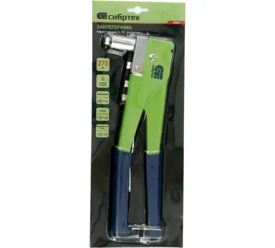 Переставной заклепочник СИБРТЕХ 270 мм, 0-90 градусов, заклепки 2,4-3,2-4,0-4,8 мм 40543