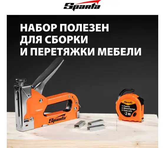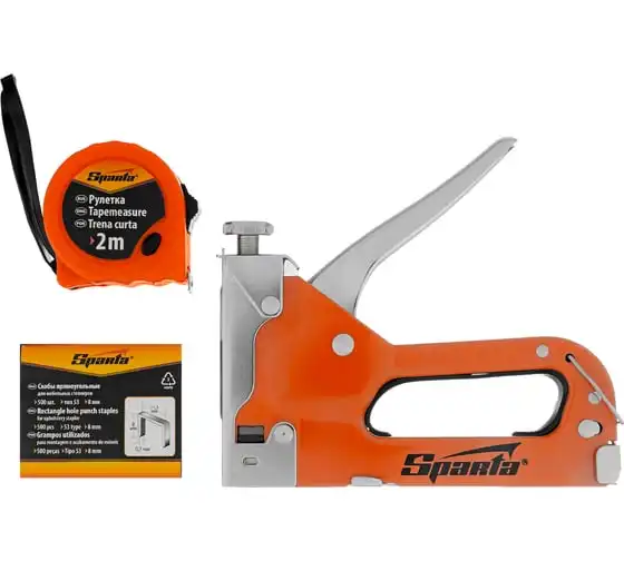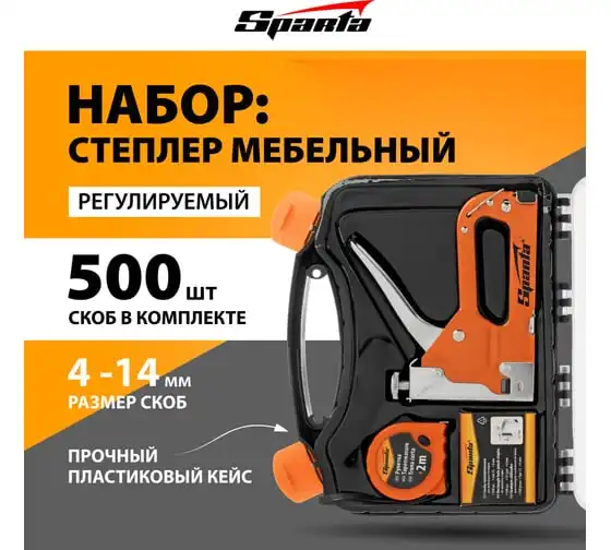 Набор SPARTA степлер мебельный регулируемый, скобы 500 шт, рулетка 2 м, тип скобы 53, 6-14 мм 42003