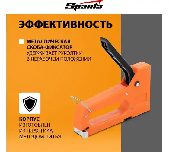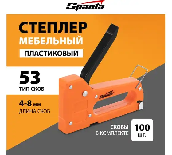 Мебельный пластиковый степлер SPARTA со скобами 100 шт., тип скобы 53, 4-8 мм 42001