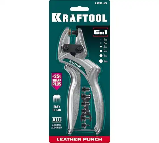 Мощный дырокол для кожи KRAFTOOL LPP-6 с набором насадок 1-6 мм 22952