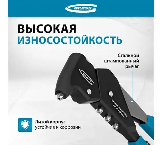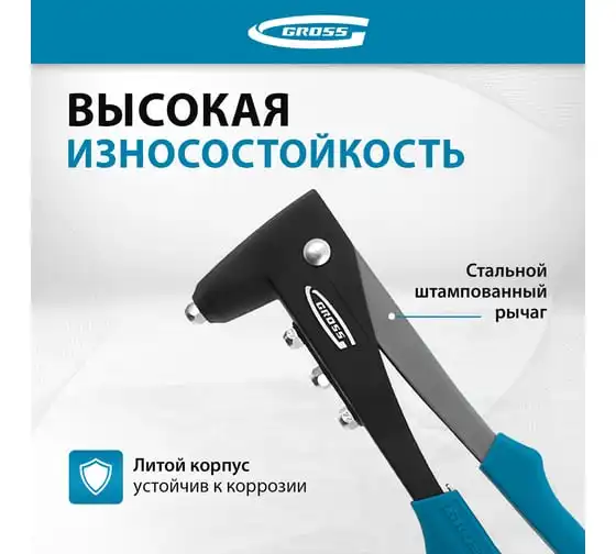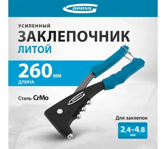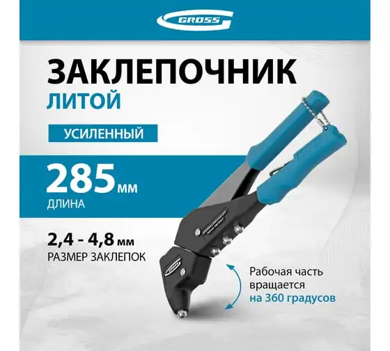 Литой усиленный поворотный заклёпочник 2,4-4,8 мм GROSS 40405