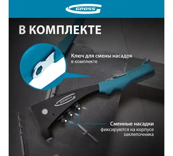 Заклепочник для резьбовых заклепок GROSS заклепки, М3, М4, М5, M6 40410