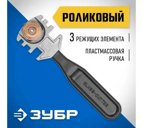 Роликовый стеклорез ЗУБР 3 режущих элемента пластмассовая рукоятка 3360_z01