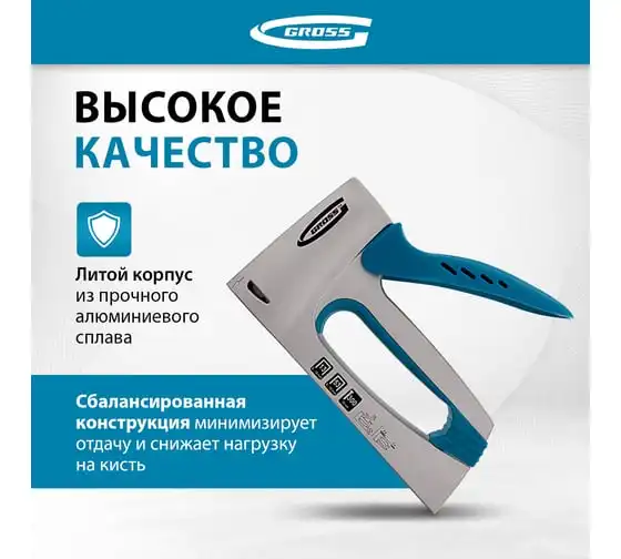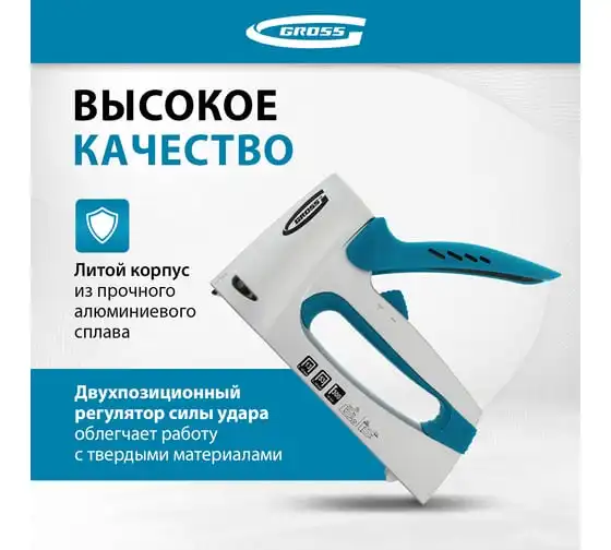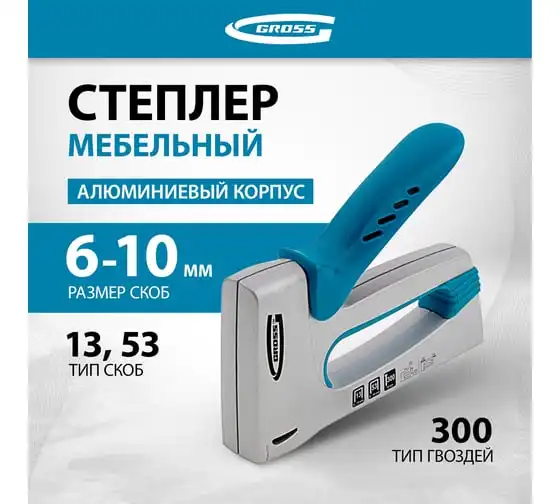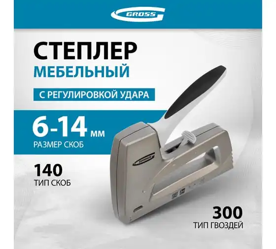 Мебельный степлер GROSS Aluminium 140 алюм. корпус, рег. удара, тип скобы 140, 300, 6-14 мм 41007