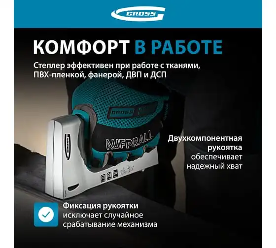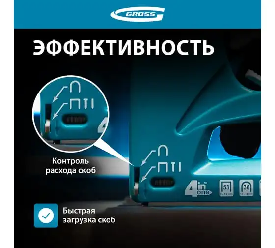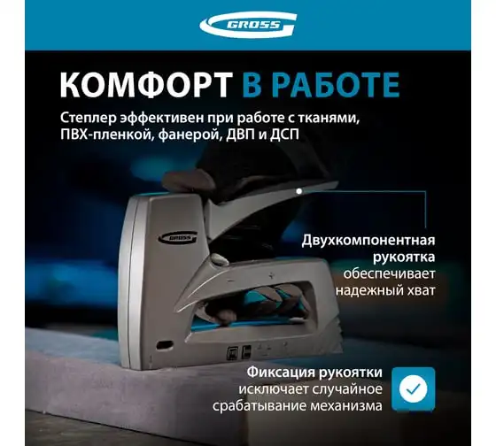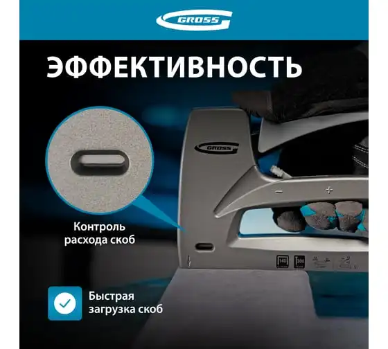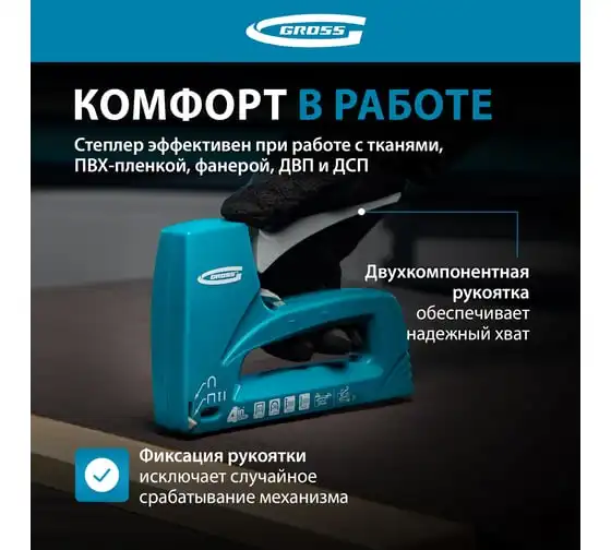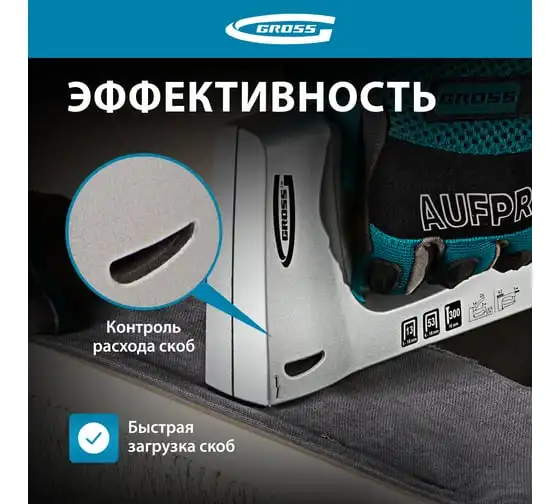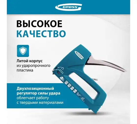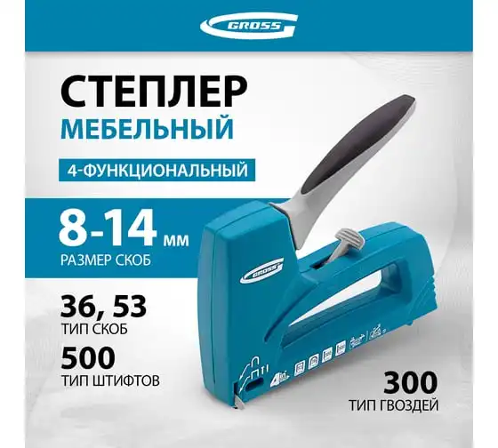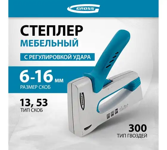 Мебельный регулируемый степлер, стальной корпус, тип скобы 53, 4-14мм GROSS Handwerker 41000