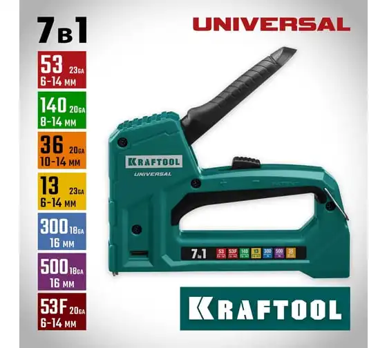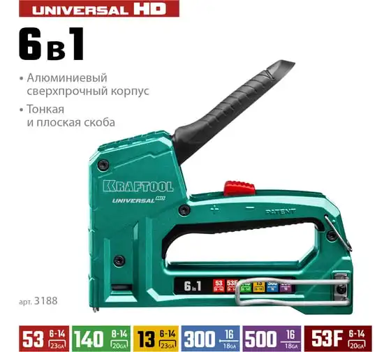Алюминиевый cтеплер 53 (6-14мм)/140 (8-14мм)/13/ 53F/300/500 KRAFTOOL Universal-HD 3188