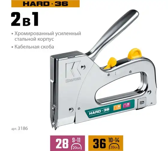 Кабельный рессорный степлер KRAFTOOL Hard-36 тип 36(10-14мм/28 3186