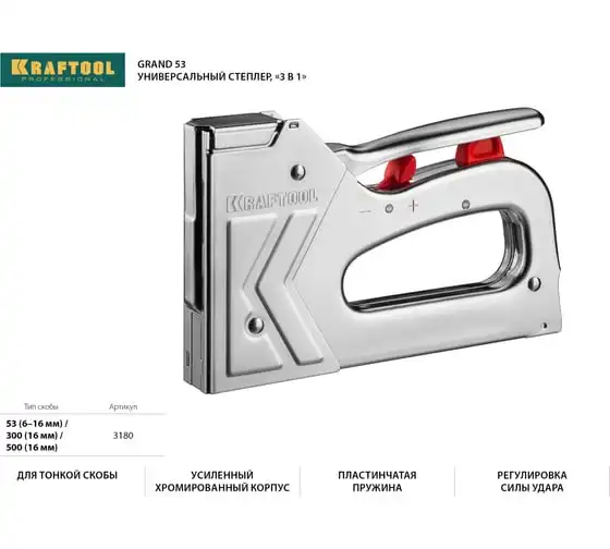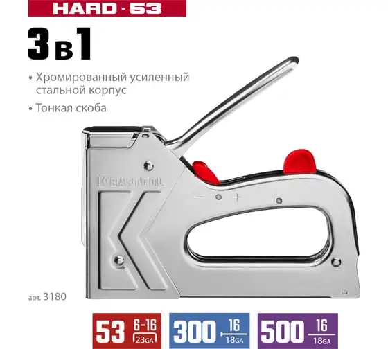 Стальной степлер тип 53 (6-16мм)/300/500 KRAFTOOL Hard-53 3180