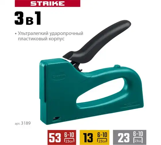 Пластиковый мощный степлер KRAFTOOL Strike 3-в-1: 53, 13, 23 3189