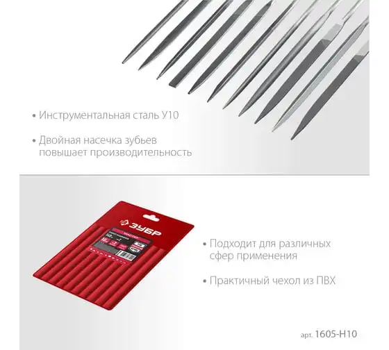 Набор надфилей ЗУБР в чехле 10 шт. 140 мм 1605-H10