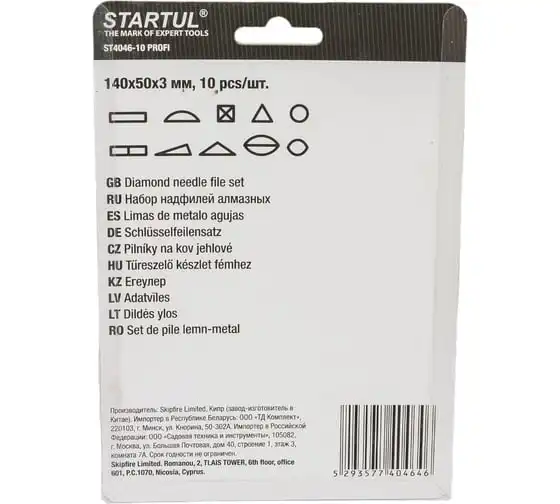 Набор алмазных надфилей STARTUL Profi 140x50x3мм, 10 предметов ST4046-10