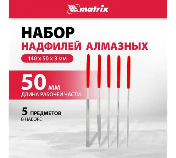 Набор алмазных надфилей 140х50х3, 5 шт MATRIX 15830