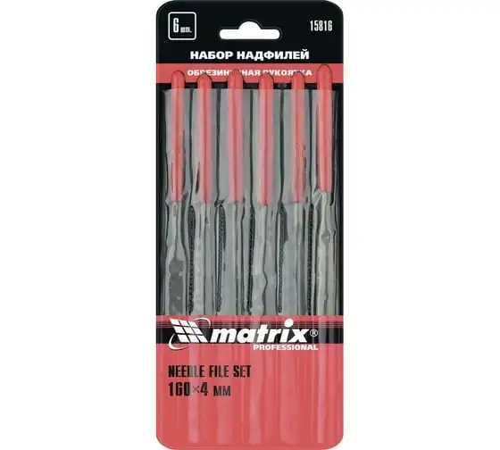 Набор надфилей MATRIX 160x4 мм, обрезиненные рукоятки, 6 шт. 15816