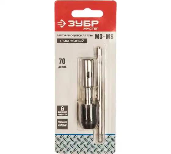 Т-образный метчикодержатель М3-М8 L-70мм/L-100мм с фиксирующим шариком Зубр 28135-70