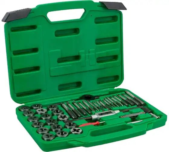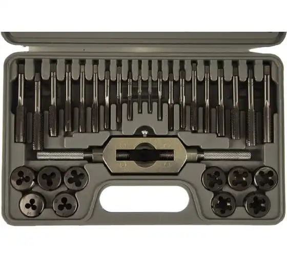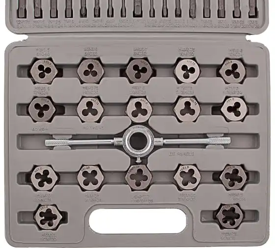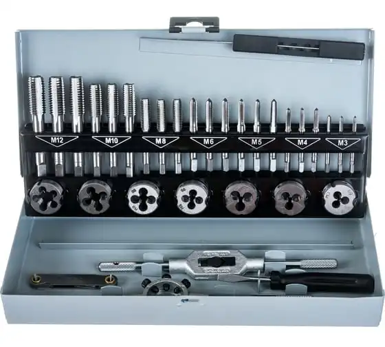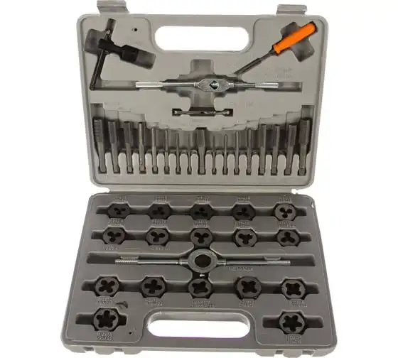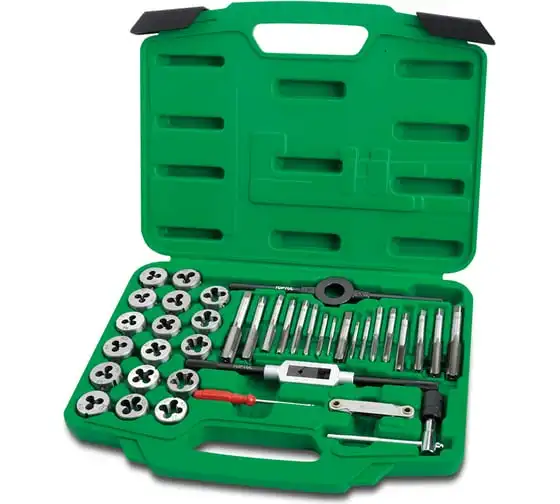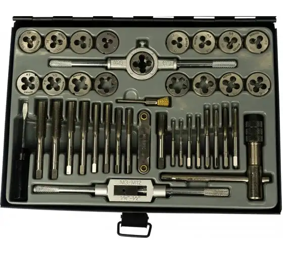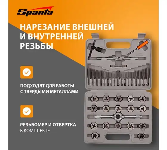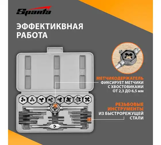 Набор метчиков и плашек SPARTA М3-М12, плашко-метчикодержатель, 40 предметов, в пластиковом боксе 773155