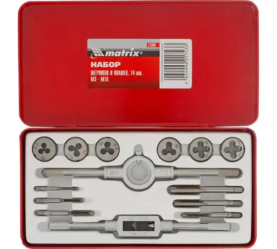 Набор метчиков и плашек М3 - М10, 14 шт. MATRIX MASTER 77345