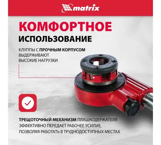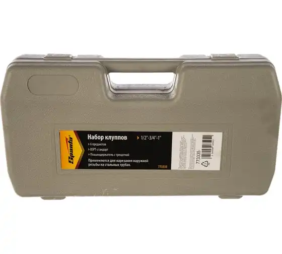 Набор клуппов SPARTA 1/2"-3/4"-1"+ плашкодержатель с трещоткой, 6 предм 773335