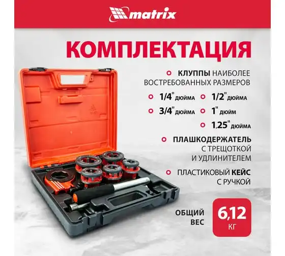 Набор метчиков и плашек Matrix М2-М18 110 шт 773110
