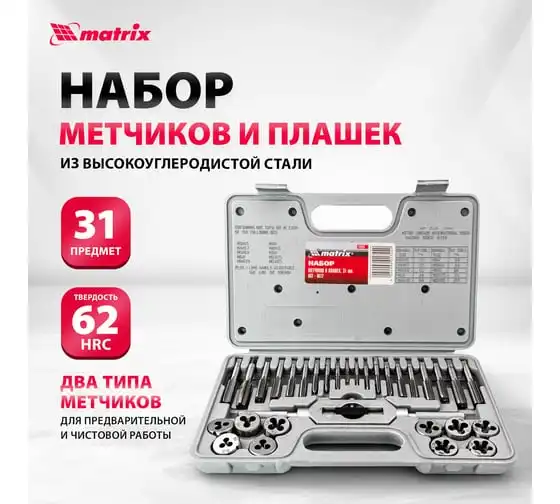 Набор метчиков и плашек 31 предмет MATRIX MASTER 77337