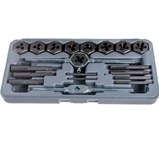 Набор метчиков и плашек М3 - М12, плашко-метчикодержатель (20 предметов в пласт. боксе) SPARTA 773105