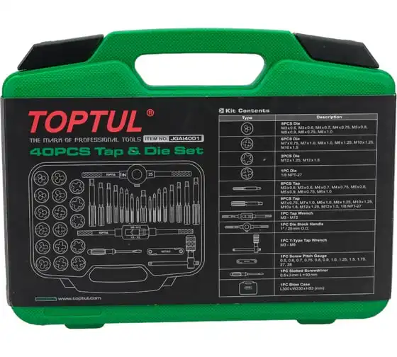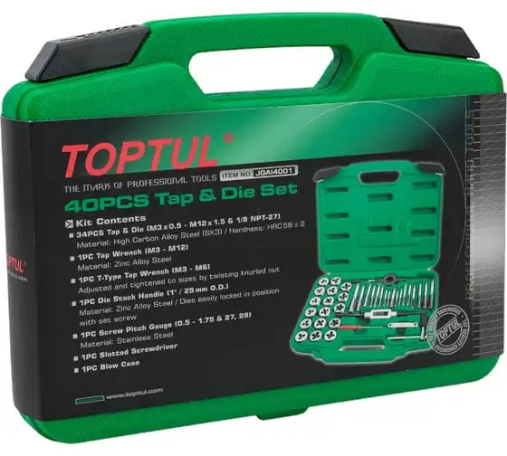Набор метчиков и плашек TOPTUL М3-М12, 40 предметов JGAI4001