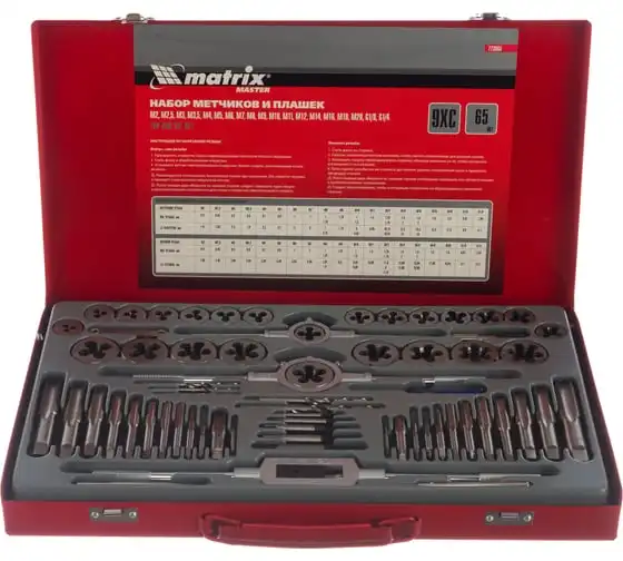 Набор метчиков и плашек Matrix М2-М20, 65 шт 773065