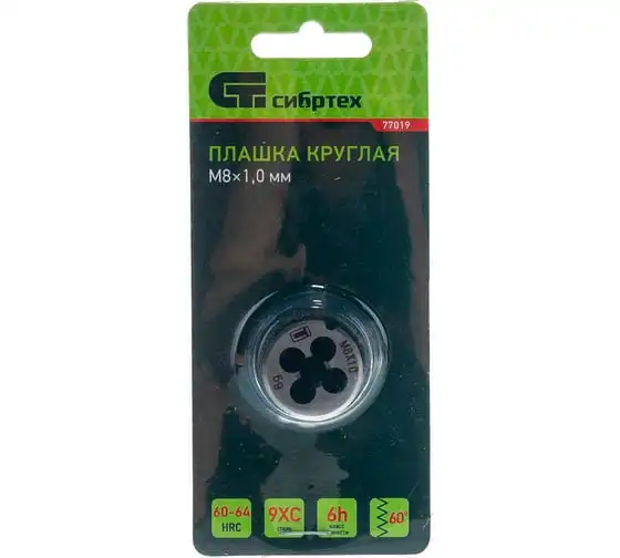 Плашка М8 х 1,0 мм СИБРТЕХ 77019