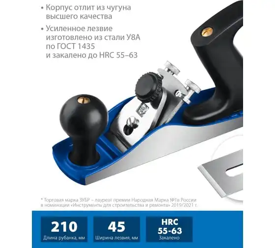 Металлический рубанок ЗУБР 210х55 мм №3 18500