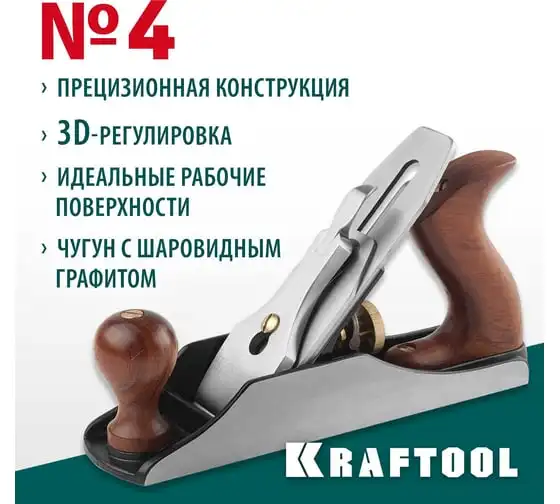 Металлический рубанок KRAFTOOL A4 Premium, 260x60 мм, лезвие 50 мм 18527-25
