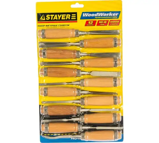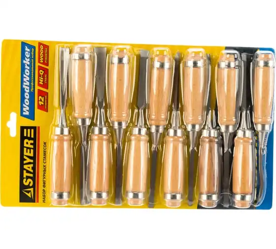 Набор фигурных стамесок STAYER PROFI с деревянной ручкой, 12шт 1835-H12_z01