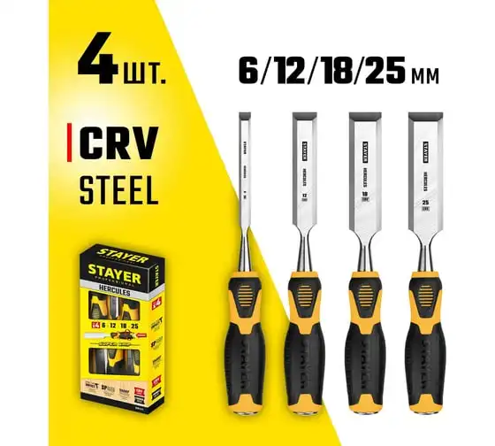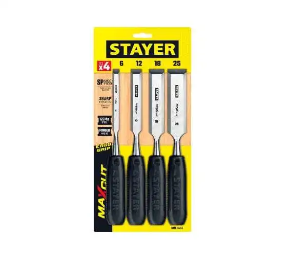 Набор стамесок STAYER ЕВРО, плоские с пластмассовой ручкой, 6/12/18/25, 4шт 1820-H4