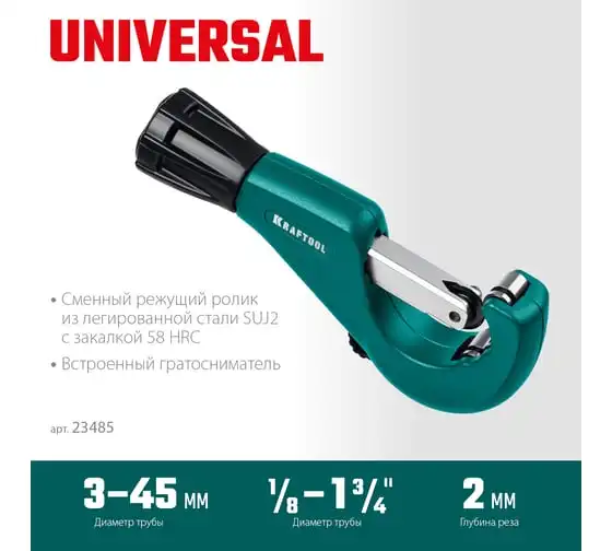 Труборез для труб из цветных металлов 3-45 мм KRAFTOOL Universal 23485