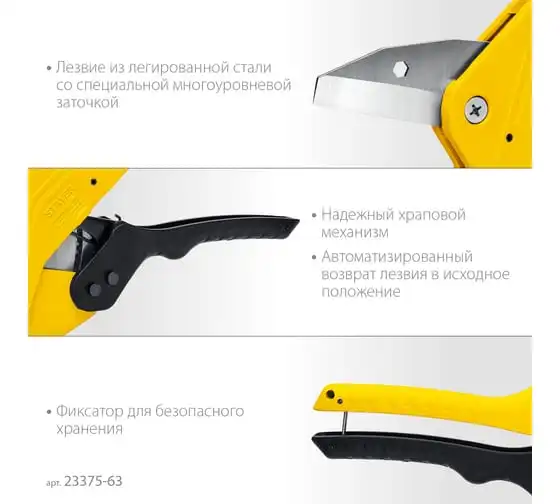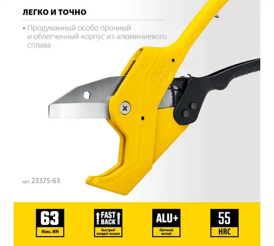 Автоматический труборез STAYER COBRA-63 по металлопластиковым и пластиковым трубам до 63 мм 23375-63